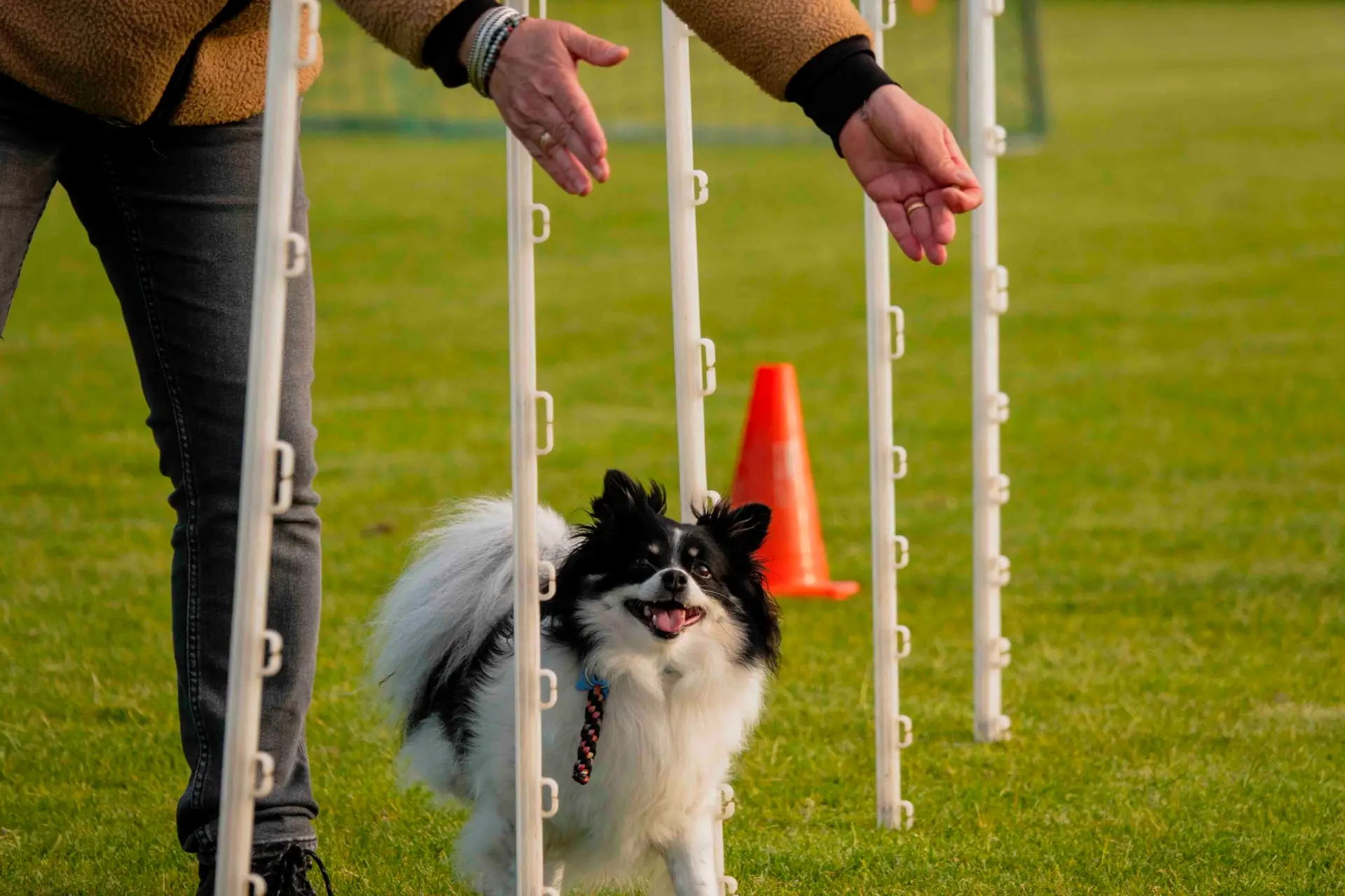 • Benodigdheden: Tijdens de Agility-lessen draagt uw hond een normale halsband en een riem van ongeveer 1 tot 1,5 meter lang. Dit zorgt voor de juiste balans tussen controle en bewegingsvrijheid tijdens de trainingen.