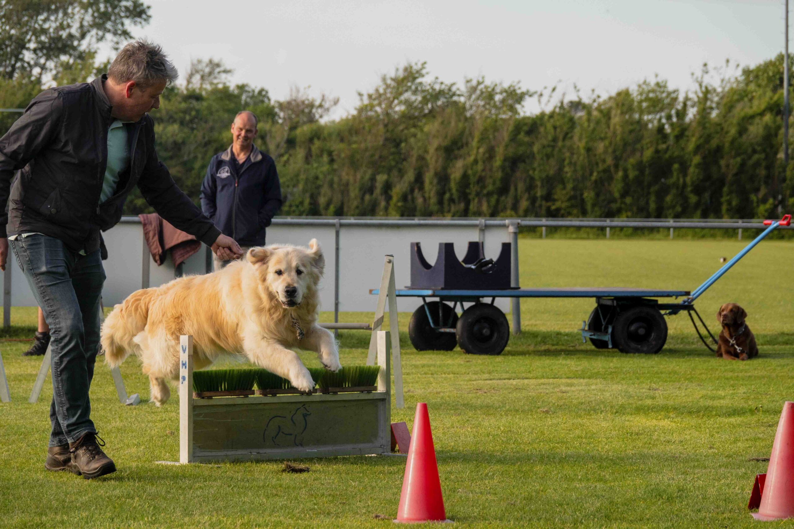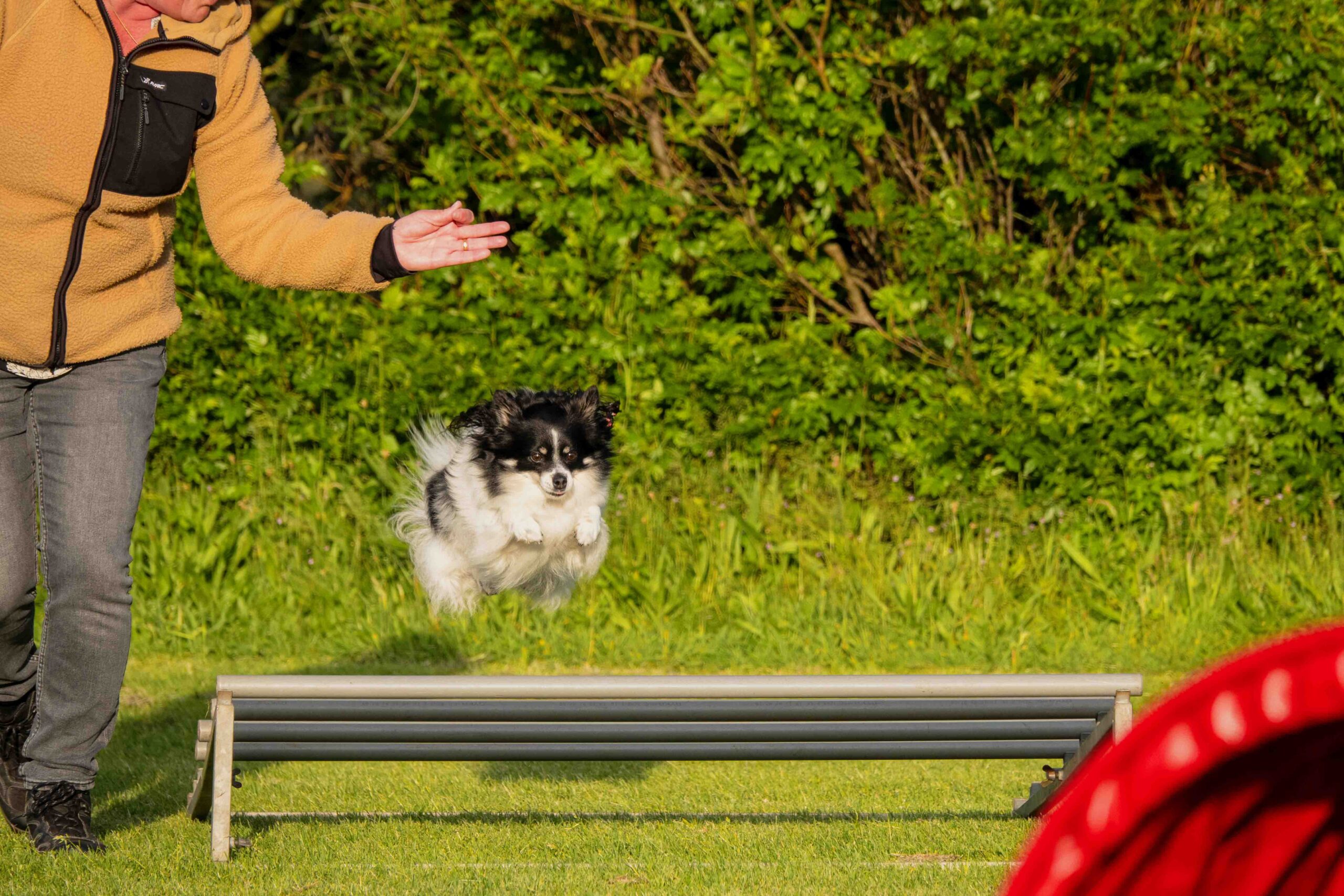 • Bezem: Een laag obstakel dat de hond moet overspringen of vermijden.